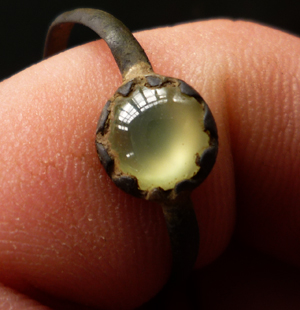 Камешек круглый сверху и плоский снизу, если бы колечко было современное то я слазал бы, что это стекло... А вот выпуклость снизу для чего? Может секрет какой? -------------------- "Take What You Can, Give Nothing Back." (c)