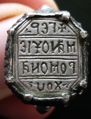 QUOTE(Aaz @ May 10 2009, 15:00) Вот такое вот колечко-печатка, что же на нём написано, говорят что древнеславянский, принадлежало какому-то Герману монаху судя по письменам. Давал даже йоге знакомому чтоб "энергию почувствовал" он сказал что кольцо принадлежало какому-то священнику который ходил вместе с воинами (хотя что на нём написано он не знал). Будут какие-то мысли? Потому как это всё догадки Надпись на греческий лад (легко ж читается - в чем проблема-то?): +ГЕРМАНОУ ИЕРОМОНАХОУ 18 век РАЗМЕРЫ? МЕСТО НАХОДКИ? -------------------- Карта СБ 42******7989