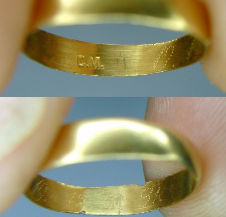 QUOTE(Kolodrom @ Dec 26 2009, 09:04) VILAD Земляк, я с тобой полностью согласен-в копе самое главное правило-никаких правил. Про первую мировую мысль интересная, но до того места она не докатилась. Кроме странной пробы смущает еще внешний вид и размер. Какой то он байкерско -рокерский что ли, но размер-мне на мизинец еле-еле налез, и носить неудобно, за все цепляется, скорей всего носили на безымянном, но это уж совсем тогда детские пальцы получаются, но на детское он совсем не похож. Боев там могло и не быть.Кольцо возможно и немцы потеряли,а ранее его забрали у кого-нибудь из наших пленных или убитых.А русские солдаты могли в России "стянуть",выменять его, или еще что.Вариантов множество. Мож кто подскажет что за буквы C.M. Кольцо золотое 900-й пробы возможно и выше. Выбиты инициалы и дата 12.7.(18)91г. Найдено на территории Восточной Пруссии. Вложенные эскизы изображений |