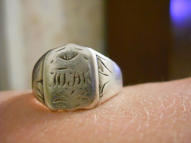 Доброго времени суток! Фото не очень, но помогите определить и датировать перстенек!? Прямо рожица получается! Может это год или инициалы? Заранее спасибо!