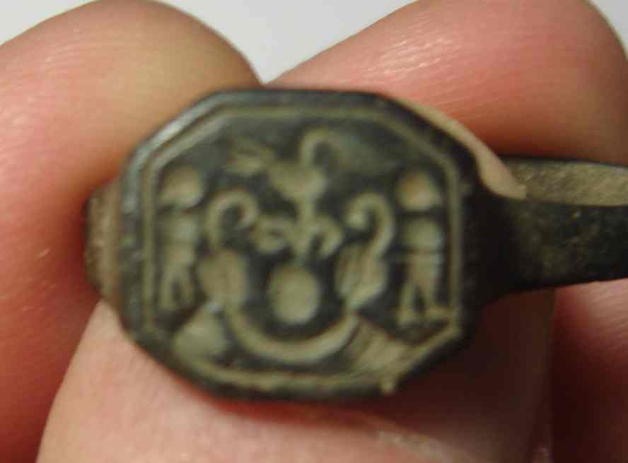Попались вчера два таких перстенька. Первый похоже серебро, тяжелый очень. Насколько я понимаю псевдогеральдика 18 века??