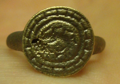 Вот, такой попался. Сопутка - Петр I и чуть позже. Соответствует ли перстень данному периоду? Подскажите по рисунку щитка - есть ли какая-нибудь смысловая нагрузка или абстрактный узор, и редкости. Вживую видны остатки посеребрения, на фото не очень видно. Регион - Тамбовская область.