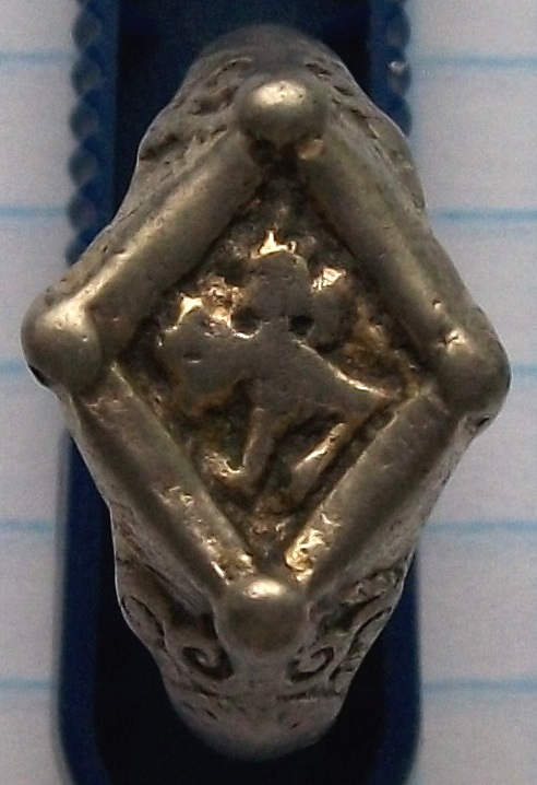 QUOTE(ewsey @ Sep 7 2012, 00:37) И вот такой перстенёк(Ag) Вам хочу представить: Клейма такого в справочниках не нашёл, какие Ваши мнения насчёт него ? Да, забыл написать, что проба отсутствует и клеймо стоит сбоку от щитка(не напротив...) Клеймо подзатерто и смысла гадать по нем нет.Перстень приблизительно с.19в. цена не велика. 500+ -------------------- Цена -это стечение обстоятельств.