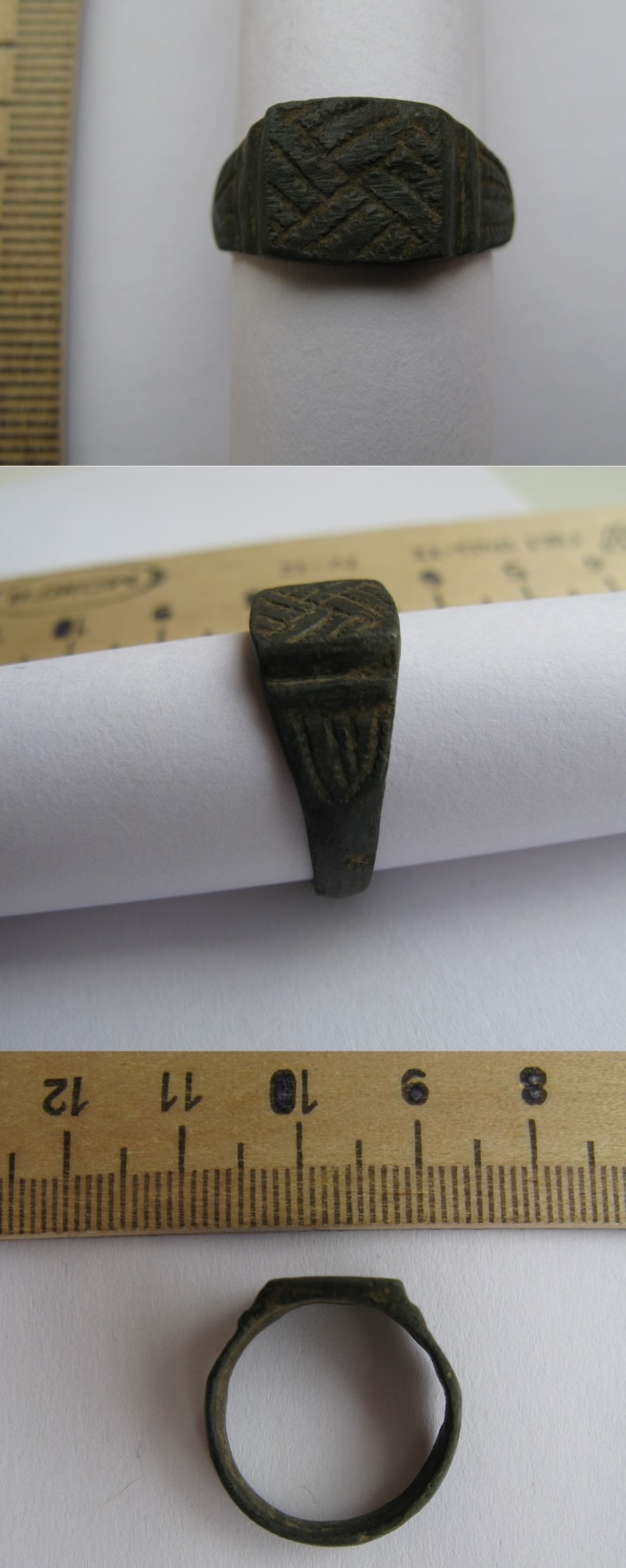 Помогите, пожалуйста, определить датировку перстня и его принадлежность. Бронзовый, сопутка бронзовый наконечник.