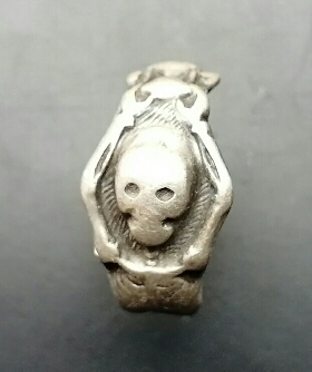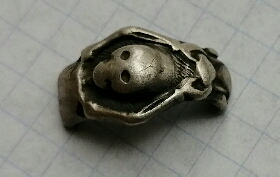 РИ,Скелет,кольцо было выполнено в виде целого скелета,который опирается ногами и руками на песочные часы,Эдакий-скелет акробат,при жизни стоил 3 р.40 к.,Сейчас такой целый и в нормальном сохране в районе 5,6 т.р.н.20 века.