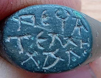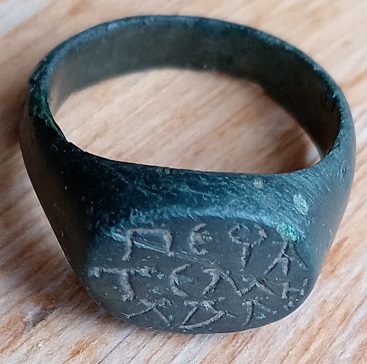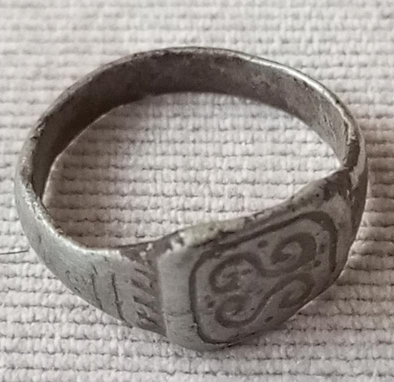 Здравствуйте, подскажите пожалуйста по перстеньку. Датировку и , что написано на щитке?