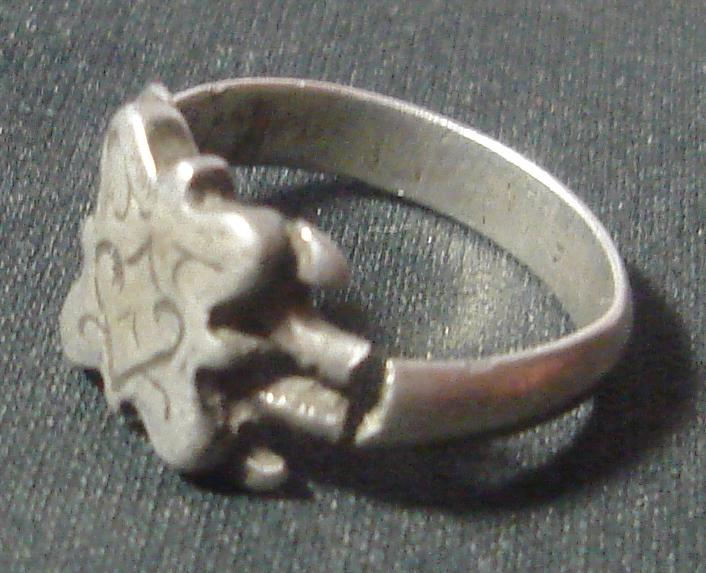 QUOTE(prosector @ Oct 17 2008, 13:56) Перстенек, щиток перстня и колечко наиболее интересные из последней поездки. Изображение перевёрнуто. Надо так: ![]() Очень интересный перстенёк! Конец XVIII-первая пол.XIX вв. Не совсем понятно - изображение выпуклое или углублённое? По бокам - буквы П / С (в зеркальном виде/на оттиске получается С/П = "СИЯ ПЕЧАТЬ" или "СЕЙ ПЕРСТЕНЬ") Но не видно, что за знаки внизу, под ними Второй уже появлялся в этой теме. Явно продукция одной мастерской: http://web-collection.ru/collection/view/1392/ Ваш из какого района? Его бы дочистить грамотно... -------------------- Карта СБ 42******7989
