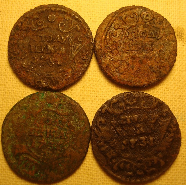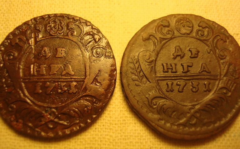 Денга 1731 ("пьяный" орел) Денга 1731(розетка " медуза") Денга 1739 ( московская) |