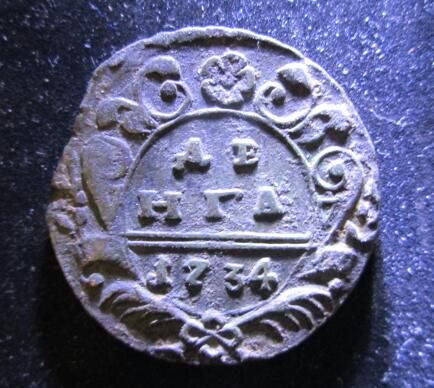 обычные денги. копаные. не дорогие. 1744 год интересный -но состояние плачевное. их очень трудно найти в хорошей сохранности. имею ввиду прочекан монеты.руб по 50 если почистите.или в куче для любителей научится чистить. такие и продают кучками.