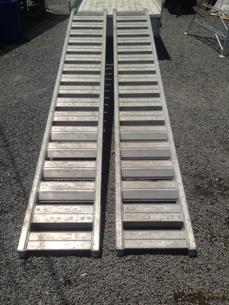 Я с аппарелями тоже долго воевал, штук 5 уже перепробовал, вроде такая мелочь, а гемороя можно отхватить хорошего. Надо ещё одну хрень учесть: когда техника заезжает в чистом виде и на ровной поверхности это одно, а реальные условия после работы будут другими: гусянки все в жидкой грязи, на улице дождик, комары, темнеет и т.д. Короче: надо полюбому менять угол заезда, либо подкладывать доски под аппарели, либо искать место для "швартовки" с уклоном.