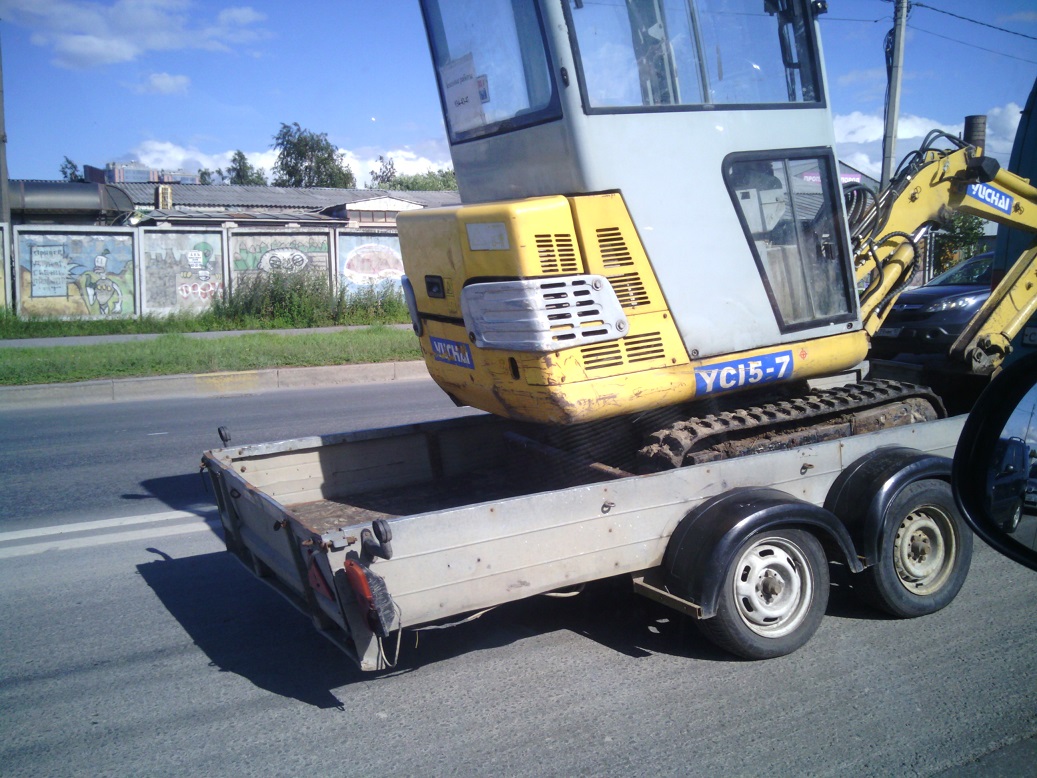 В Питере почти в центре сфотографировал прицеп. Прицеп очень резво с перестроениями буксирует газель-микроавтобус (еле догнал для фотографирования). Вес экскаватора не знаю. Наверное не нарушают и ГИБДД наверное не боятся Вложенные эскизы изображений -------------------- консультирую по копдайвингу;подвоху покажу крас.рыбку в Неве Легкие водолработы, поиск потеряшек.