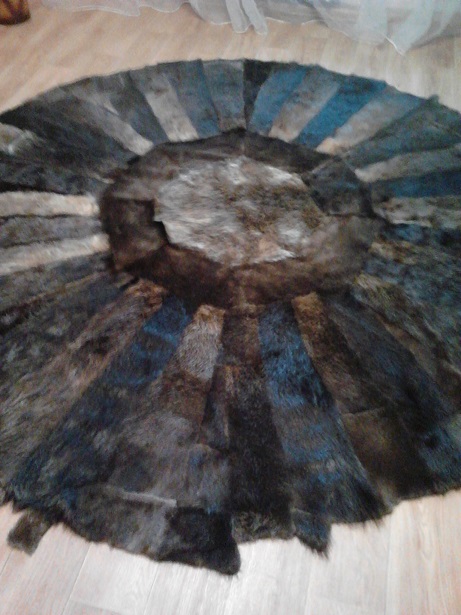 Привет честной компании! Вчера заехал к скорнякам и чуть в обморок не упал.((((((((( Суки решили отсебятины нахерачить и по моему мнению загубили 17 бобров. Они даже не согласовав со мной рисунок, форму и размер нашили такой фигни.(((((((((((( Изначально должен был быть плед примерно 2500х2200 с рисунком из чернышей и рыжих. Когда я им позвонил они сказали что уже почти готово но только круглый ковёр получился, нахер мне ковёр? Если я плед заказывал прямоугольный на 2-х спальную кровать. Понимая что попал но надо как то спасать положение, сказал чтоб заовалили и пришили фистоны. Вот сука инициатива наказуема.