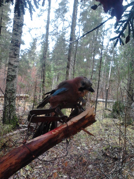 Сходил сейчас проверил путик из 21 капкана, грустно. В капканах 1 кедровка, 2 сойки, 1 капкан медведь разворошил, сойка после фотосесии успешно сдёрнула оставив в капкане пару когтей, вторую сойку вместе с привадой утащила куница, вернётся по любому на это надежда. Стрельнул 3 белок, можно было бычка привалить, собакен выгнал метров на 20, да ну его нафиг.