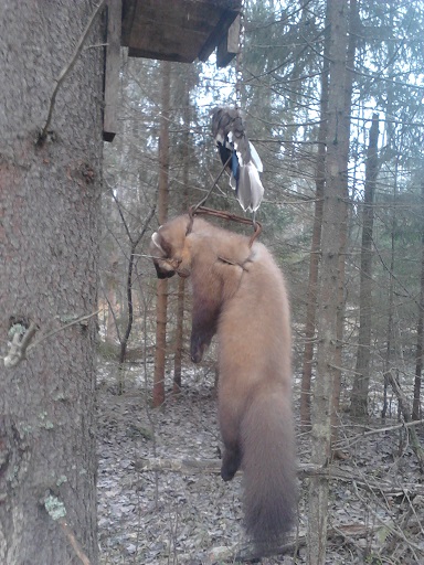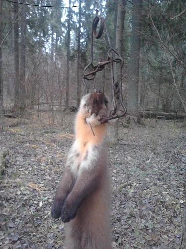 Вышел сегодня на путик с целью проверить капканы и доставить ещё пяток капканов. Уже в первом меня ждало разочарование, капкан сработан приманки нет, проволока затащена на верх, явно куница. И таких разочарований меня ждало ещё три, в пятом капкане лапа кунья, в этот момент когда я задумчиво разглядывал ногу куницы, собакен метрах в ста начал что то работать, подхожу на осине сидит куница, ну думаю не далеко ушла без ноги. Выстрел и на землю падает абсолютно целая куница. Ещё метров через пятьсот Сэм выгоняет ко мне красавца лося, я лишь проводил его взглядом. Опять лай на этот раз белка. В проходных капканах меня ждал сюрприз из двух красавцев котов. И вот уставший но довольный бреду по тихоньку домой, а в голове всё проносятся эпизоды сегодняшней охоты.