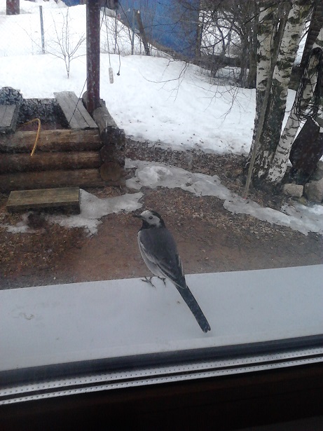 Сегодня трясогузка разбудила, как весна в окна бьётся, зеркальные, аппонента видит. До лета все окна заплюёт.