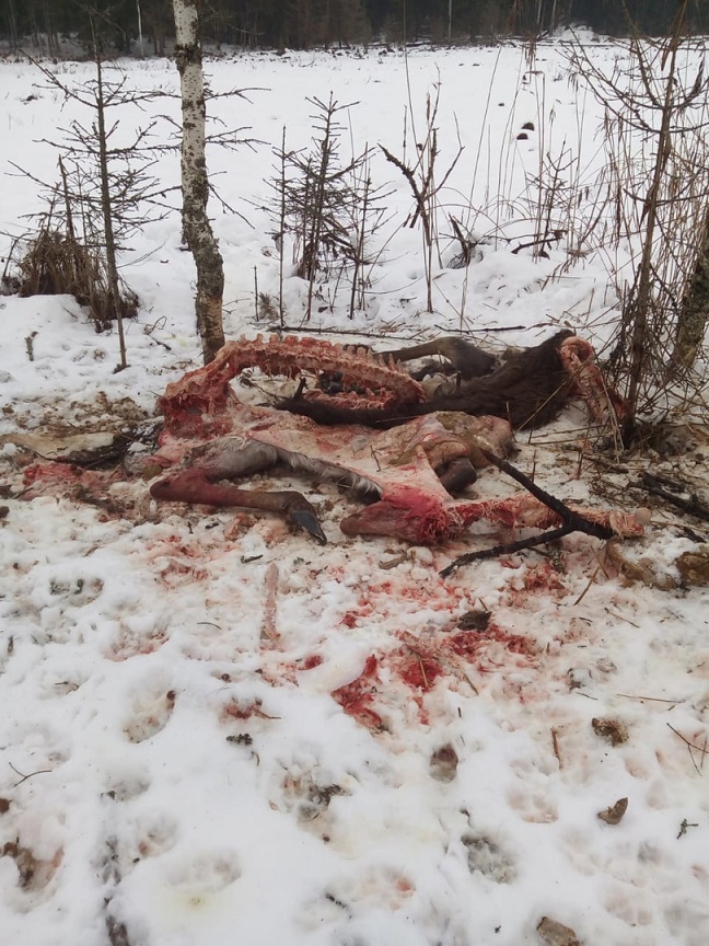 QUOTE(тетрохлор @ Feb 15 2021, 17:34) Приветствую!Что-то тема заглохла.Никто не охотится?Пару дней назад смотали флажки с очередного оклада.В этот раз удалось взять 3-х штук,ну и мне удалось добыть молодую волчицу.За ночь эта стая из 7 шт. оставила от лося только то ,что на фотке. С полем ! Даже для прибылого очень мелкий зверь, скорее по размерам на шакала похож ... Мельчают волки ... Один раз в жизни прошел охоту на волка от начала до конца. Оклад ставили 13 км, потом всю ночь поднимали флажки,подтягивали, от налипшего мокрого снега они проседали, потом выдавливали волков в край оклада и заново флажили, потом снова выдавливали и заново флажили. В итоге уменьшили изначальный оклад в 4 раза ... ну и финал всего загон. 6 штук тогда взяли, двое ушли. Более тяжелой охоты у меня в жизни не было. Полтора суток на ногах, без сна и отдыха. В Тверской области охота была. -------------------- менты кАзлы !!!
