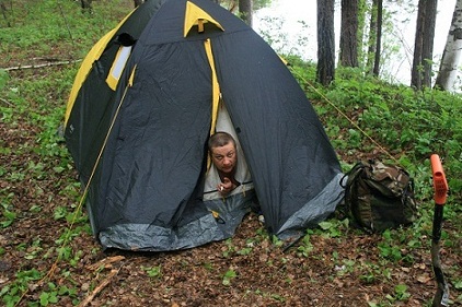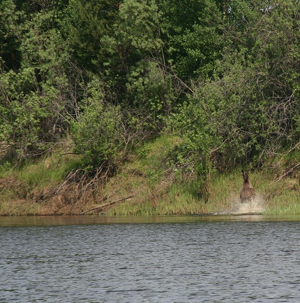И так продолжу. После неплохой пробежки решено пройти по реке выше на 30 км и зайти в впадающую речку.Разбили новый лагерь. Рядом с барсучьей норой. Утром двинулись вверх по речке. Вспугнули спасающегося в воде от гнуса лося.