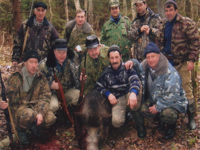 здравствуйте,всех сновым годом,поздравления с добытыми трофеями,а у меня гончак опять 3-й день гдето гоняет ,прогулял на свою голову,в кустах за домом и 300-сот метров не прошли как подхватил когото и ...ищу с ног сбился ,но ни чего найдём ,цуже зацепка есть,видели в одной деревне,ну и фото к рождеству на фото 1-ом открытие сезона,стрелок в центре первый ряд,к сожалению не присутствовал на той охоте