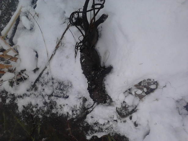 Ставил сегодня капканы на куницу, зашёл на плотину, там до этого пролов был, и свежей выдрой всё избегано, на этот раз сопля не проскочила, а судя по следам она не последняя.