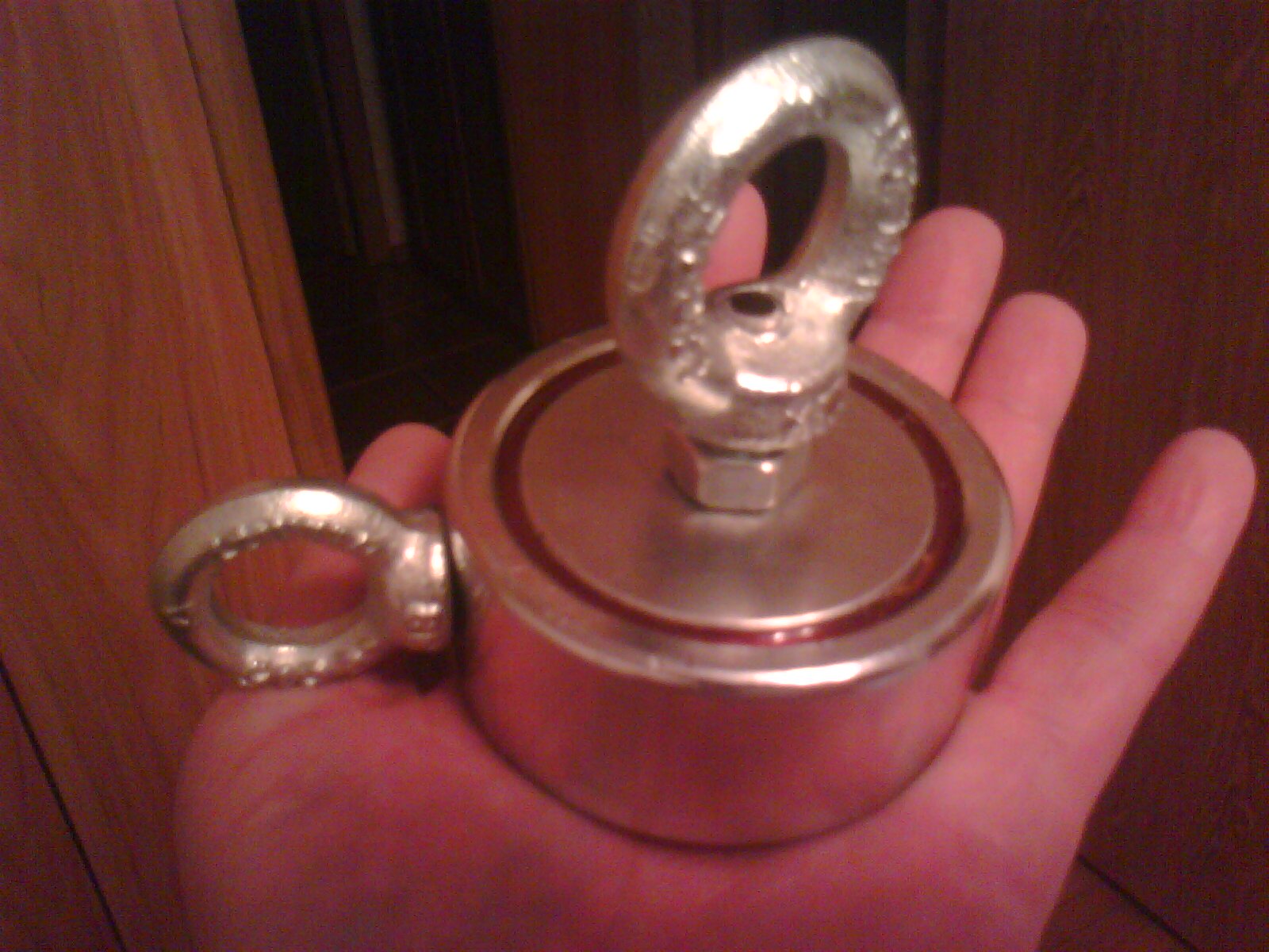 Из Редмага магнит получил в срок.Извиняюсь за опоздание обещанного поста.Посылка на сумму 2350 р.Московская область. Сумма изделия 2000р,200x2 два рыма как и объявлено,пересыл 350р. как и сказано было,отправка наложки 150 р. как положено по почтовым переводам.Итого 2500 р.Боковой рым закручивается до упора строго в перпендикулярном положении к плоскости магнита.На основном рыме имеется гайка с простой функцией контри.Ну вот как то так.Спасибо изготовителям,все по честному