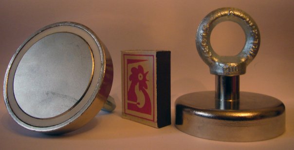 У меня магнит самодельный сделан из внутренней вставки магнитного стола шлифовального станка, закреплен на 4 точки по углам. Плашмя я отодрать еге от сейфа не смог но если тянуть за один угол - отрывается. Авообще безполезная вещ, водоемы заилены или слой ржи толстый в общем путевого ничего не попадается. |