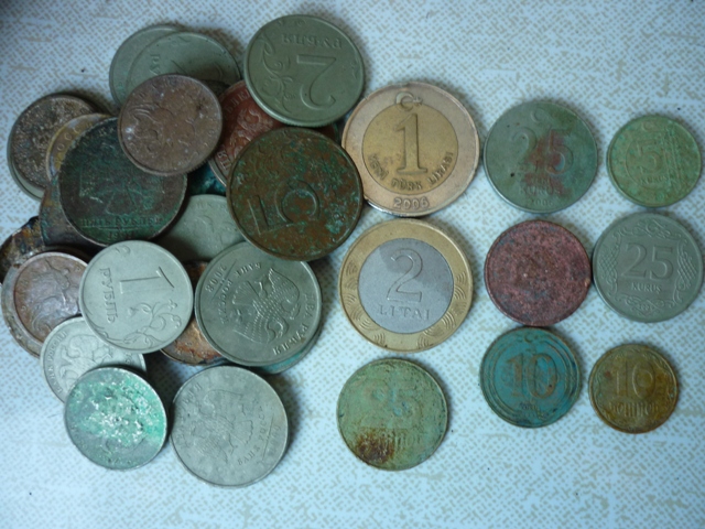 Вообще-то одна находка всёже была, сын нашёл 10 евроцентов под водой, видно, кто то из отёзжающих бросил на возвращение, на конуне, окислиться не успела.