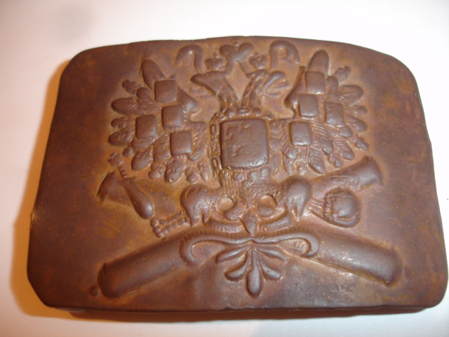 Лежит уж давно..А может форменная или вензель чей? Может спецы чего усмотрят?