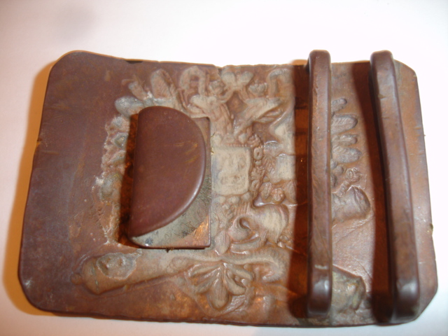Хочу добавить, что эта бляха не поставлялась интендантскими ведомствами в войска, а покупалась в военных магазинах т.к. имеет нестандартное для армии двухскобовое крепление вместо одной скобы с выемкой под шпенек.