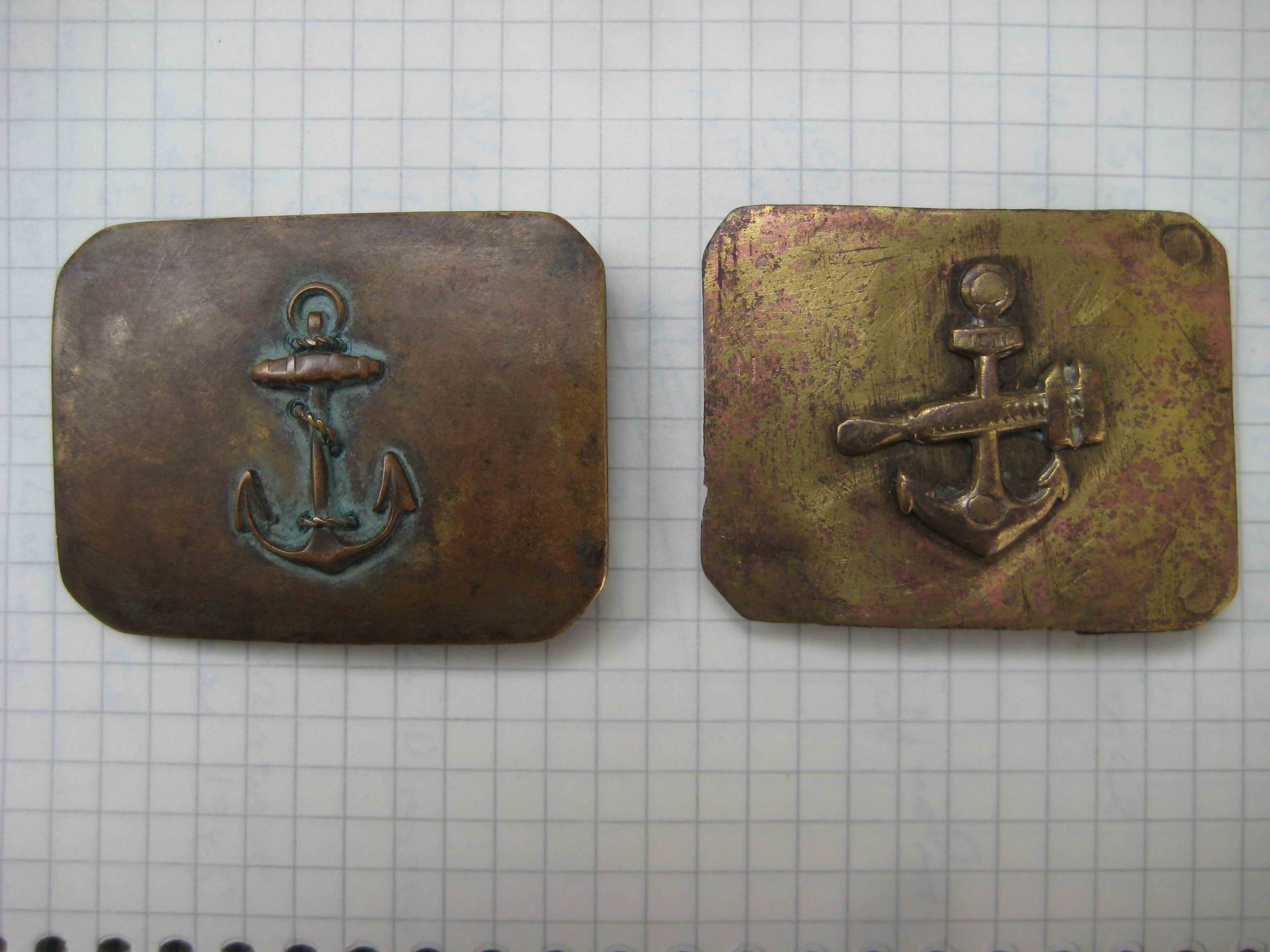 В первой пряге якорь с винтом изготавливали сами.А во второй не стали изобретать велосипед и воспользовались эмблемой торгового флота Царской России.По этому выглядит классно.