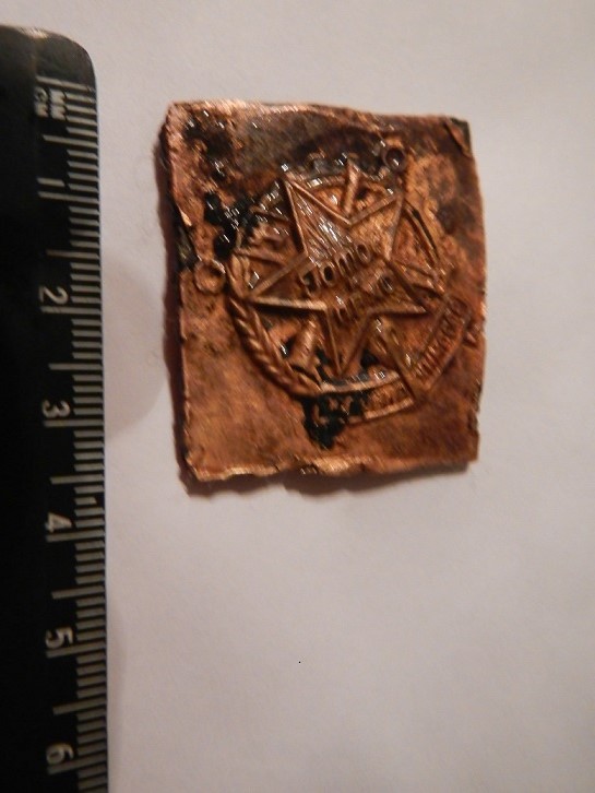 Это остатки от бляхи? Ил нечто иное? Если это бляха-зачем обрезали? Надпись читается вроде бы как "Готов к ПВХв". Есть ли смысл чистить ее? есть ли спрос на нее?