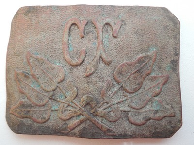 Дембельское творчество с утернянным элементом, по моему мнению. Послевоенное, судя по воротам. Посмотрите например по поиску дембельское творчество, десантные пряги.
