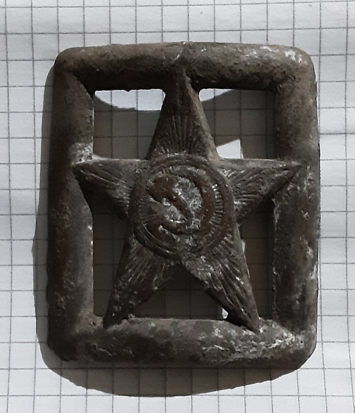 Доброго времени суток всем. Подскажите пожалуйста что за пряга такая, и можно ли её оценить. Помыл водой и щёткой, песочек прилипший снимать не стал, виднеется позолота с обеих сторон, одного крепления нет, на втором имеется звезда с надписью Москва. Буду признателен.