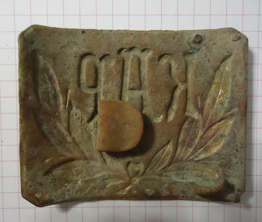 Она еще и крепилась на левую сторону, такие выпускались до 1894г. Пряжки с таким креплением встречаются не часто.