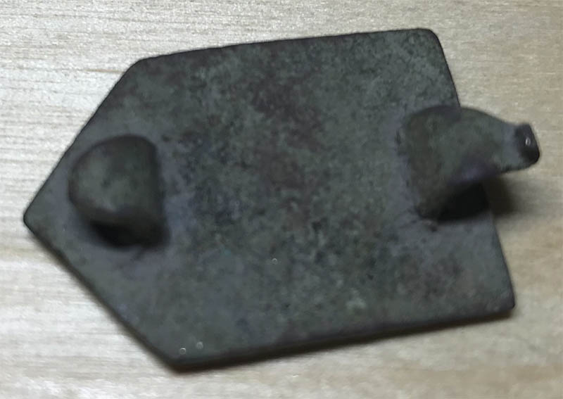 Здравствуйте! Прошу помощи в атрибуции. Видится ременной наконечник или ременная накладка. Длина - 3,2 см, ширина - 2,2 см.