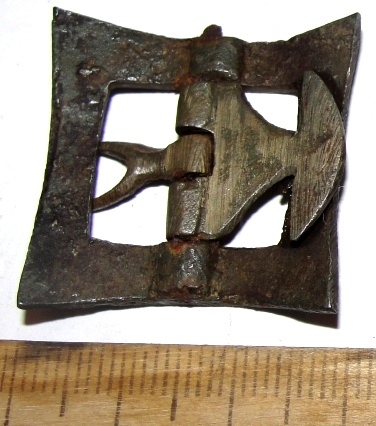 Здравствуйте.А кто подскажет какого года пряжка?Найдена в бывшей польско-немецкой колонии времен А-3.Рисунка не видно да и надписей.Пряга железная размер выс. 47мм шыр. 54мм.Имеетли интерес?С ув.Владимир