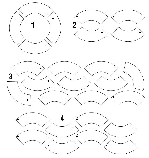 Что-то я совсем запутался в теории, нужно взять магниты и покрутить их разными сторонами. Насчёт стопки магнитов, то это опять вопрос, сколько у них полюсов. Если 4, то они должны слипнуться друг с другом в стопку. Получится тот же сегмент кольца, но только толще. Если же 2 полюса, то нечётные нужно переворачивать, и получится кривая поверхность )(. Я пошёл магниты от подложки отламывать. |