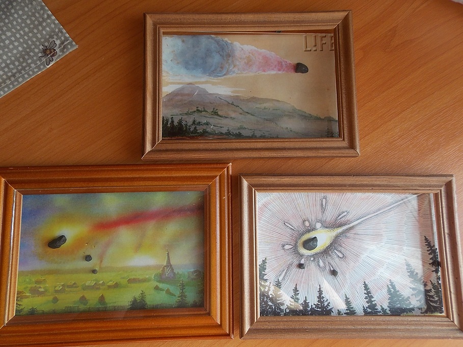 При создании композиций в числе прочих использованы репродукции с подлинных картин, изображающих падение Сихотэ-Алинского метеорита (1947 г.) и метеорита Богуславка (1916г.)