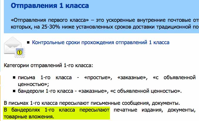 отправлял 1 кл заказным.как делал всегда.теперь низяя видите -ли.только 1 кл ценным-тогда можно.