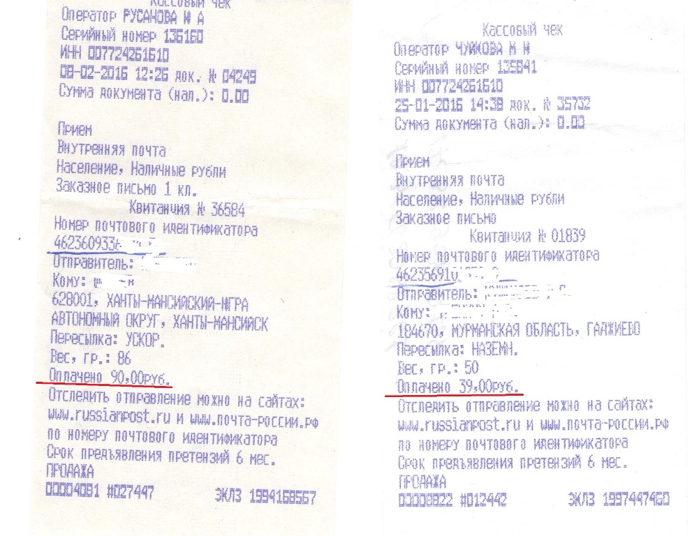 QUOTE(Siniy Borod @ Feb 29 2016, 20:29) я не понимаю, как людям удается укладываться в стольник (в том числе и Вам)... Меньше 140 - давно уже на нашем ПО - никак... В том числи и пакую предметы, выдавая за пачку открыток и проч... ну никак!!!!! На нашей почте-все возможно. Вот нашел из своих недавних отправлений--Заказными письмами в Ханты-Мансийск и Мурманскую обл. из родимого Оренбуржья. Одно письмо -1-й класс отправлено.!!----------- Обычно укладываюсь в 50 руб-простое заказное письмо-бандероль тоже не дорого. Главное-упаковать еще правильно. И почти в этот же день мне выслали -ОДИН! значек -с центральной России-за 180 руб. Правда-товарищ-пласт.конверт со значком-умудрился посылкой его оформить. Вложенные эскизы изображений -------------------- Карта С\б 5336 *** 1659.
