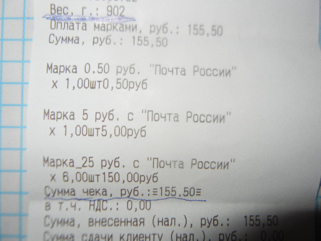 QUOTE(meverik @ Dec 28 2016, 01:27) Приветствую всех! Буквально сегодня отправлял заказной бандеролью вес 902 гр. взяли 155р Хороший пример. Не 1-й класс, без оценки в рубль и прочих удорожающих наворотов. Вот и результат. Учитесь! -------------------- Ишь ты...