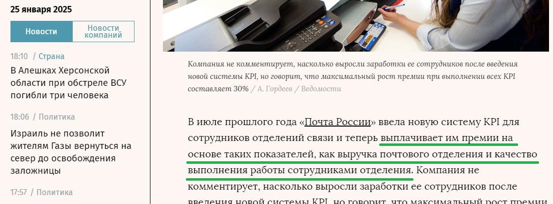 QUOTE(Молотов @ Jan 25 2025, 16:52) Это будет продолжаться до тех пор, пока премирование сотрудников конкретного отделения будет зависеть от от выручки этого данного отделения. Это мы тут покупаем-продаем и вынуждены в процессе отслеживать телодвижения работников почты влияющие на стоимость отправлений, а простые люди раз в год посылку отправят и особо не вдаются в тарифы и правила почты России. Персонал в отделениях почты разный. Как я заметил особенно "беспредельничают" новые сотрудники (которым совсем недавно вложили в голову, что их зарплата/премии зависят от выручки). ще 8 лет назад когда работала начальником ОПС, была итакая же система. план спускался на все, на отправления, на продажу газет журналов, на продукты и т.д. ладно в городе, а в деревне? как там сделаешь план на отправления? ни как! кстати план был конский и никогда его не делали. почта зимой отапливалась дровами, на дрова деньги выделялись, но привозили гнилье с распилиных брошеных домов. все рушилось, ремонт надо делать, так мне говорят, ты мужа попроси, пусть он сделает. -------------------- бывший ник ажогин https://www.reviewdetector.ru/index.php?showuser=34254