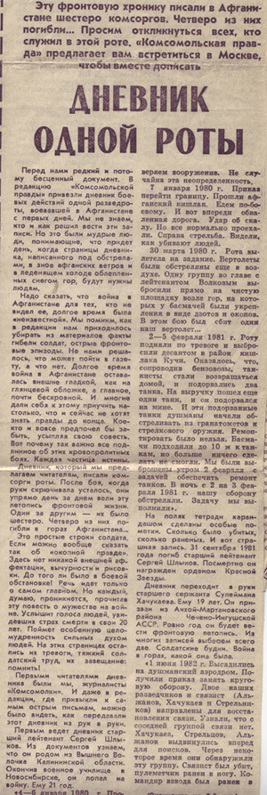 Петрович! Весь призыв ноябрь1979 г. ВСЕХ частей вошедших в Афган в дек.79- янв.1980 прослужили там ДВА года. Это известно даже тем, кто прослужил за речкой хотя-бы пару месяцев, и даже если не воевал. В статье Виктора Верстакова про нашу роту он уделил по моей просьбе больше внимания именно этим оставшимся в живых двум мужикам Никитину и Михнову. Они уволились в конце декабря1981г.,на третьем году службы. Поэтому когда в следующий раз будешь умничать по поводу сроков службы в Афгане смотри не проколись и побольше общайся с теми, кто воевал и не такие чудеса узнаешь. Для ace! Сейчас открою сов. секретное наименование нашего подразделения – разведрота отдельного 860 мотострелкового полка дислокация г. Файзабад, только ни кому, ни слова об этом – секрет (шутка). К ВДВ, к сожалению, прямого отношения не имею, но в Афгане не один раз приходилось совместно участвовать в БД-кроме восхищения других слов нет и это уже не шутка. Статью почитай того самого спецкора, т.к. была написана почти 30лет назад есть возможность ещё пост######ся. Честно говоря, прочитав название темы, хотел почитать воспоминания участников тех далёких событий, своими поделится, чувствую, погорячился, здесь другие «воспоминания « и высказывания в чести. Сейчас помещу другую вырезку из газеты КП от 15 04 1989г. дампоследнюю возможность позубоскалить. PS: Извиняюсь что на ТЫ в посте, всё читать на ВЫ Вложенные эскизы изображений |