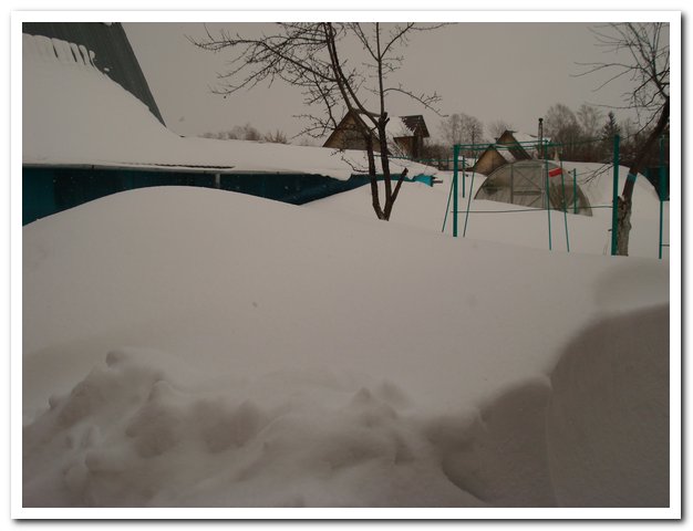 Да, таять будет долго. Сегодня с утра путь к сараю пробивал, часа полтора, был у стрельца, тот тоже в запаре со снегом! Ему правда дох...ра копать.