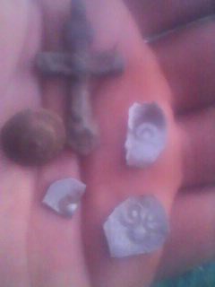 QUOTE(Vladimir-om @ May 26 2016, 10:24) Надысь иконка попалась вроде нечастая [attachmentid=3331410] И украшение серебро не пойму то ли сережка то ли еще что [attachmentid=3331415] Без размеров и веса трудно сказать, но, по-моему, это кистень, он же волкобой. |