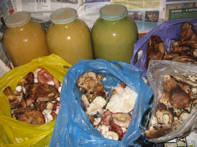 Сегодня снова "на рысях"! Пасмурно,влажно, дождь отдыхает,видимо в дневные часы берёт передышки. За бортом не посмотрел...,но навскидку 14-15град.,вообщем - теплынь! Едем намеченно,за мёдом,а заодно и по грибам прогуляться. Беру мёд у своего старого друга..."запатентованный"...прошлогодний,с пыльцой,как он выражается,мед - масло! Пришлось покрутить колёса - до места не близко. И вот на месте - родные берёзы!! Сбор вели с 14оо до 19оо Итог: под пять ведёрок подберёзовиков и пару ведёрок прочих,а точнее:свинушки,сыроежки,землянушки(фото с описанием сейчас выдам,отвечу,на ранее заданный вопрос по ним) Вообщем,день прошел на природе и совсем не плохо. Желаю всем удачи в нашем промысле,как говорится,грибка без червячка С уважением! Сообщение отредактировано peshod: Sep 21 2013, 02:04 Вложенные эскизы изображений -------------------- Иллюзией человек одержим Она-то и есть его истинная правда Все остальные правды-относительны/Флобер/