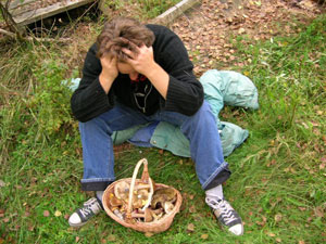 Вчера с 18-30 убежал в лес в целях поискать грибочков, подышать свежим воздухом, грибов нет, нашёл один белый груздь и одну волнушку, старые подберерёзовики и горкушки не в счёт. Расстроился, похолодало у нас резко, вечером + 3 а ночью и того меньше.