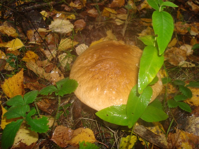 А ещё у меня на даче почти круглогодично растёт под ёлками вот такой боровичок