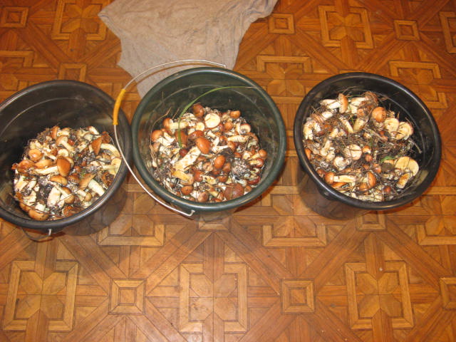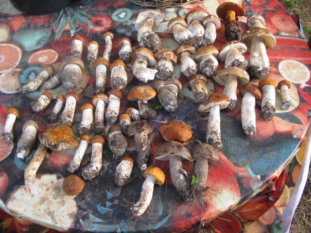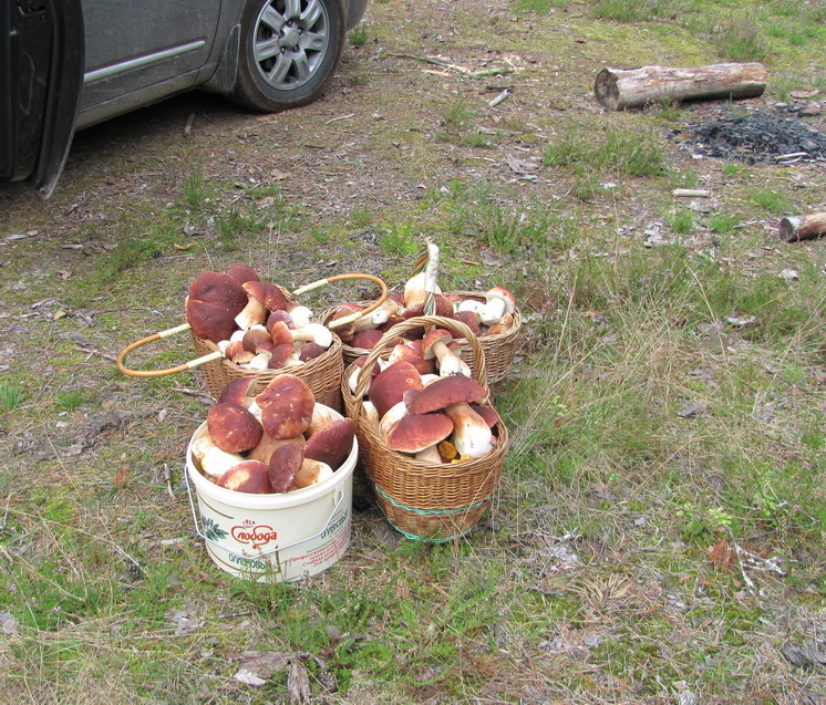 Позавчера за полтора часа-ведро белых. Вчера-такая же история.Правда лосиных блох в лесу тьма. Не успеваешь с себя снимать.Ни какие брызгалки не помогают. Свинушки только начали вылезать.Сыроежек практически нет. Лисичек вообще ноль.Подберезовики и подосиновики тоже есть, но не особо много.Белые и крепыши и переростки. Так что если будет тепло,то грибы всех видов по полной пойдут. |