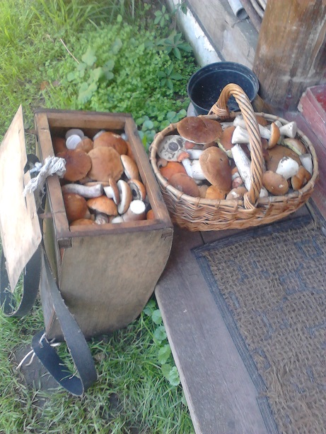 Погулял 3 часика в пяти км от дома. Полное 20-и литровое ведро(в основном молодые белые) плюс пакетик чёрного груздя. С десяток грибов-зонтиков (если кто-то знает что это такое