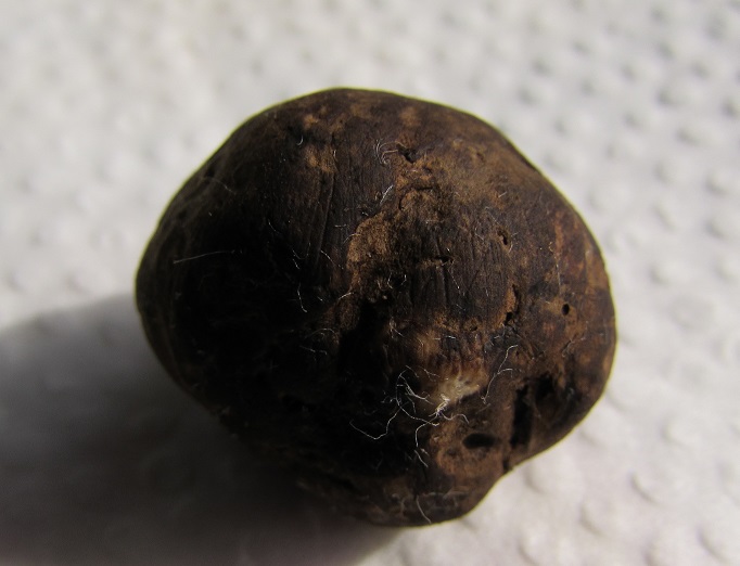 Ездил сегодня по грибы. Маслята, подберезовики благодаря частым дождям уже пошли в наших Средне – Волжских краях.Шастая в березняке, обратил внимание, что вокруг многих погибших, но еще стоявших березах обкопаны корни. По следам и характеру обкопа, однозначно сделано это барсуком. Заинтересовался, и сам руками обкопал пару таких берез. И вот, что меж корней, с глубины примерно 5 см выкопал - шарик, темного цвета, неправильной формы, чуть поменьше грецкого ореха, тугой наощупь. Запах не понятный, не резкий и не ароматный, просто отдаленно напоминает запах сладковатой, опавшей листвы. Понятное дело, что первое пришло на ум - уж не трюфель ли? Дома разломал его, сделал срез – структура на срезе мраморная (бело-черная). Решил исследовать дальше – нарезал, поджарил на посолн. масле. Запах шкварок! Вот 100% шкварок жареного сала! Конечно, на вкус не пробовал, от греха подальше. Что это такое так и не понял, но что трюфель сильно сомневаюсь. Я его даже в глаза не видел. По литературе в наших краях он есть. Знатоки, просветите, что это может быть? Вложенные эскизы изображений |